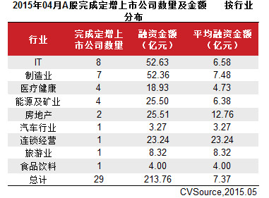 投中统计:4月定增市场步伐放缓 29家完成213.76亿元