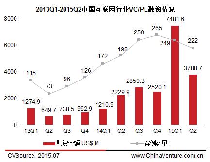 图1 2013Q1-2015Q2中国互联网行业VC/RE融资情况