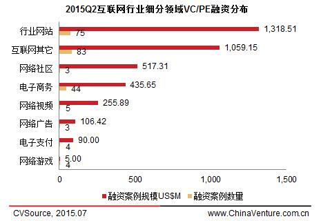图2 2015Q2中国互联网行业细分领域VC/PE融资分布