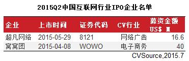 其中,窝窝团于4月8日在纳斯达克上市,募集资金4,000万美元;超凡网络于5月29日在香港创业板上市,募集资金1.29亿港元(合1,660万美元)(见表3)。