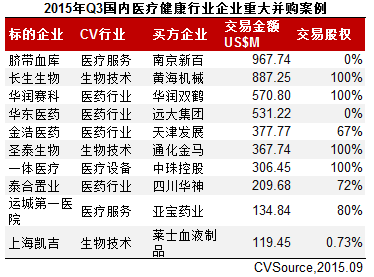 表2 2015年Q3国内医疗健康企业重大并购案例