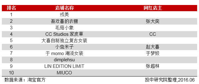 到如今,网红已经开始走向了第四代——移动互联时代,自媒体、实时交互是这个时代的特点,这一阶段的网红开始通过淘宝、短视频、直播等移动平台APP输出内容IP。一些平面模特或是对穿搭有自己独到见解的博主开始设立自己的个人品牌,如今,这个群体的总数据统计已经超过1000家。在2015年淘宝平台公布的女装C店(非天猫类店铺)年度销售额排行TOP10中,来自网红的店铺就有5家,其中像张大奕的店铺一年进账3亿元。她上线新品2秒钟内即被顾客“秒光”,即使没有双十一的推波助澜,平日里上新一次也能实现百万级的销售额。