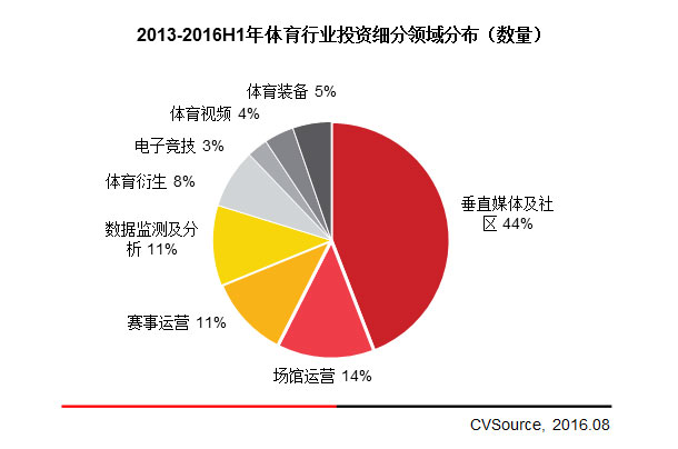 图4 2013-2016H1体育行业投资细分领域分布(数量)