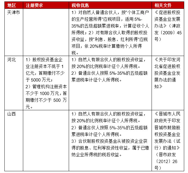 1)经过对全国33个省市统计,深圳、天津、河北、山西、湖北、湖南、南京、云南对合伙企业的有限合伙人的利息、股息、以及红利收入,征收20%个人所得税,对普通合伙人的股权收益按5%~35%五级累进税率征收个人所得税;