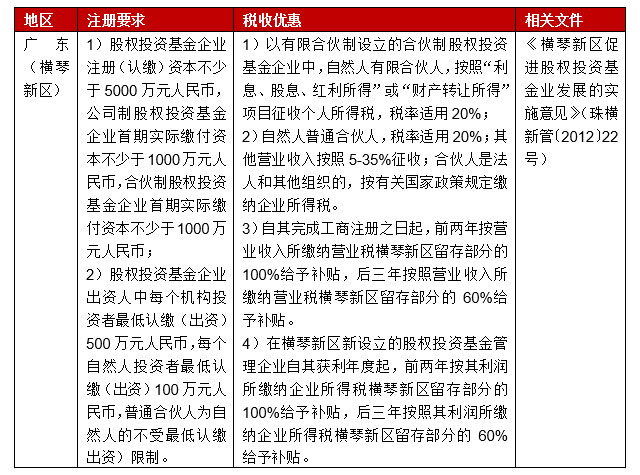 3.对于公司制和有限合伙制基金,各地会根据基金规模进行500万-1500万的一次性补贴。对于基金管理公司(GP)来说,海南给与50万-100万的一次性补贴;大连、成都给予50万补贴;嘉兴对注册资金1亿元以上、管理基金规模超过10亿元且对当地新增财力贡献较大的股权投资管理企业,经批准可享受浙江省金融机构总部相关政策,由区政府给予不高于地方留成部分10%的一次性奖励。