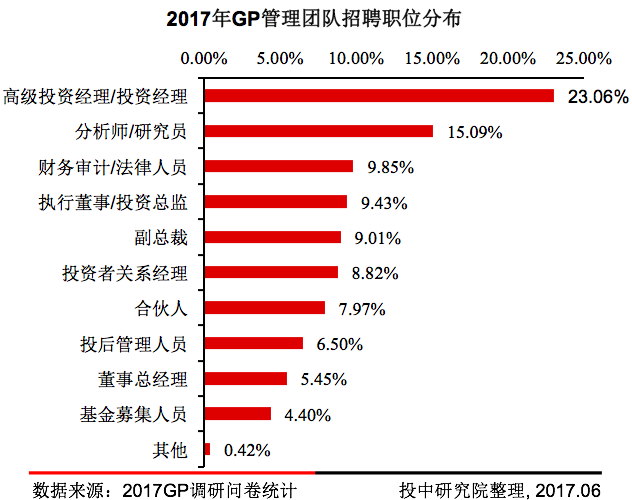 2017年GP在管理方面会更愿意在投资者关系管理和投后服务方面投入人力,高级投资经理及分析师依旧是VC/PE行业的急需人才。