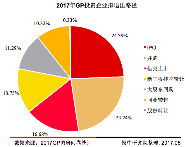 2017年GP更倾向于IPO、并购、借壳上市退出,新三板退出已不再成为GP的主要选择。