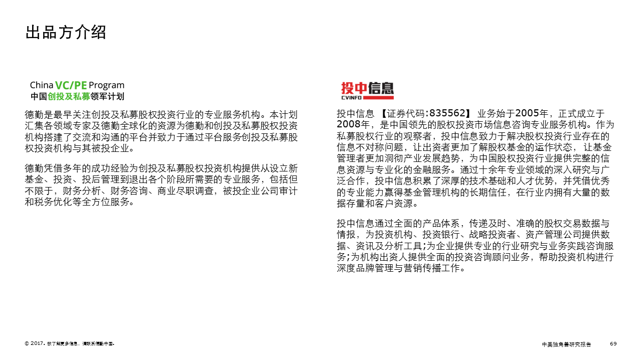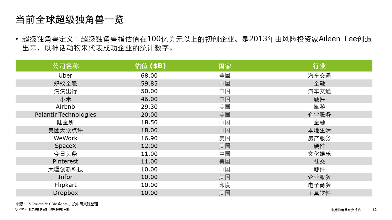 重磅! 德勤与投中联合发布2017中美独角兽研究报告
