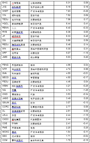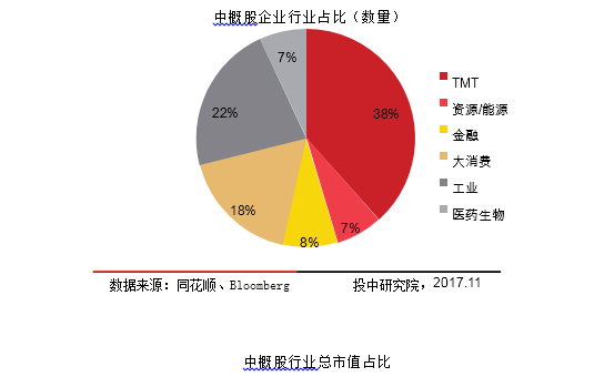 通过对同花顺、Bloomberg 等数据库的中概股数据整理,投中得出了目前中概股的行业分布情况,投中认为目前的美股中概股市场呈现如下特征: