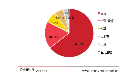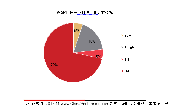 根据投中数据产品 CVSource 的统计,我们获得了 1996 年以来的 VC/PE投资中概股的信息,如附录一所示。经不完全统计至少有 40 家中概股企业在上市前曾经获得过 VC、PE 等股权投资机构或天使投资人的投资。在目前已知的近 40 家中概股企业中,72%的被投企业集中于 TMT 领域,另外有 18%的被投企业属于大消费类企业。这一点说明,投资中概股的股权基金更加青睐于国内的高成长、高技术壁垒、轻资产类型企业。而 TMT 和消费类企业能够和投资机构理念更好匹配,因而能够较多的获得私募股权基金的投资。
