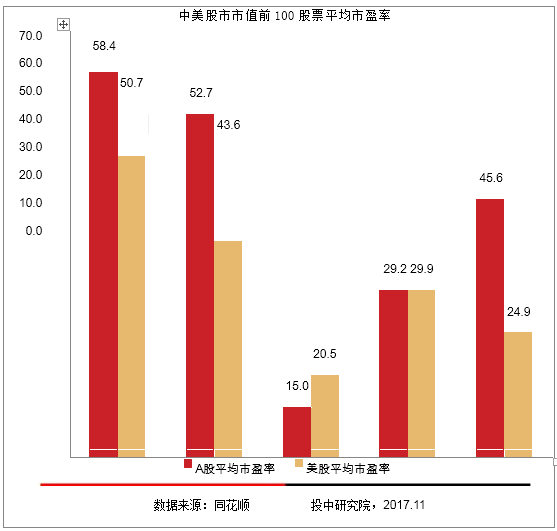 从中国和美国市场的估值不难看出,美国市场的估值相对国内 A 股市场估值态度更加中立,在 TMT 和医药两大领域的估值显著低于国内水平。一个重要的原因是美股存在做空机制,股价收到市场中看多和看空双方的博弈,而国内股市不允许做空,导致很多股票事实上存在高估。