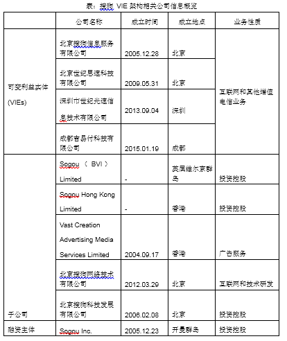 搜狗公司主要采用 VIE 架构来进行此次上市操作: