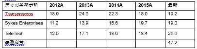 从市盈率上看,泰盈科技比 3 家海外企业均值高出 1 倍。但中国呼叫中心
