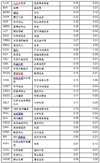 而由于 2014 年以来国内资本市场对资产重组新规的出台,中概股公司私有化进程放缓也将导致更多企业暂缓回归国内,维持中概股数目上的稳定。在数目稳定的情况下,行业的细分龙头进一步加入中概股板块,势必将推动整个板块资金量的增长。所以未来的中概股板块将会呈现数量上的稳定和质量上的提高两大趋势,进一步扩大板块的资金体量。