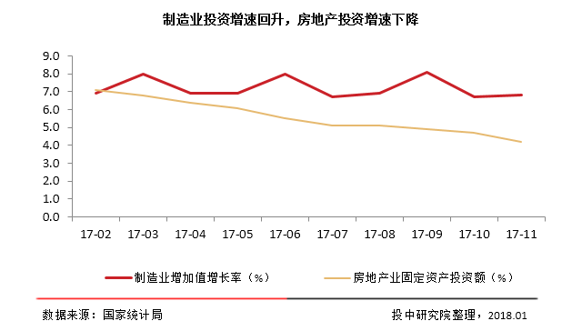 投中研究院预计,2018年中国宏观经济形势趋稳,同时鉴于2017年底通过的特朗普减税法案有望进一步刺激美国需求扩张,因此中国经济将受到部分冲击,而欧日等发达国家和地区经济复苏好于预期,对于中国经济而言外部需求有明显改善作用。
