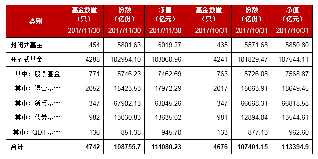 表1:中国各类型公募基金
