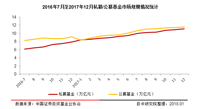 图12:公募私募基金规模对比图