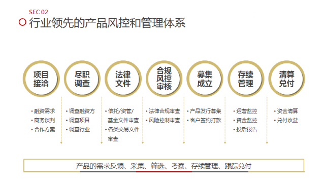 1、专业团队:专人专岗,每一类存续产品都有专业团队进行投后跟踪;