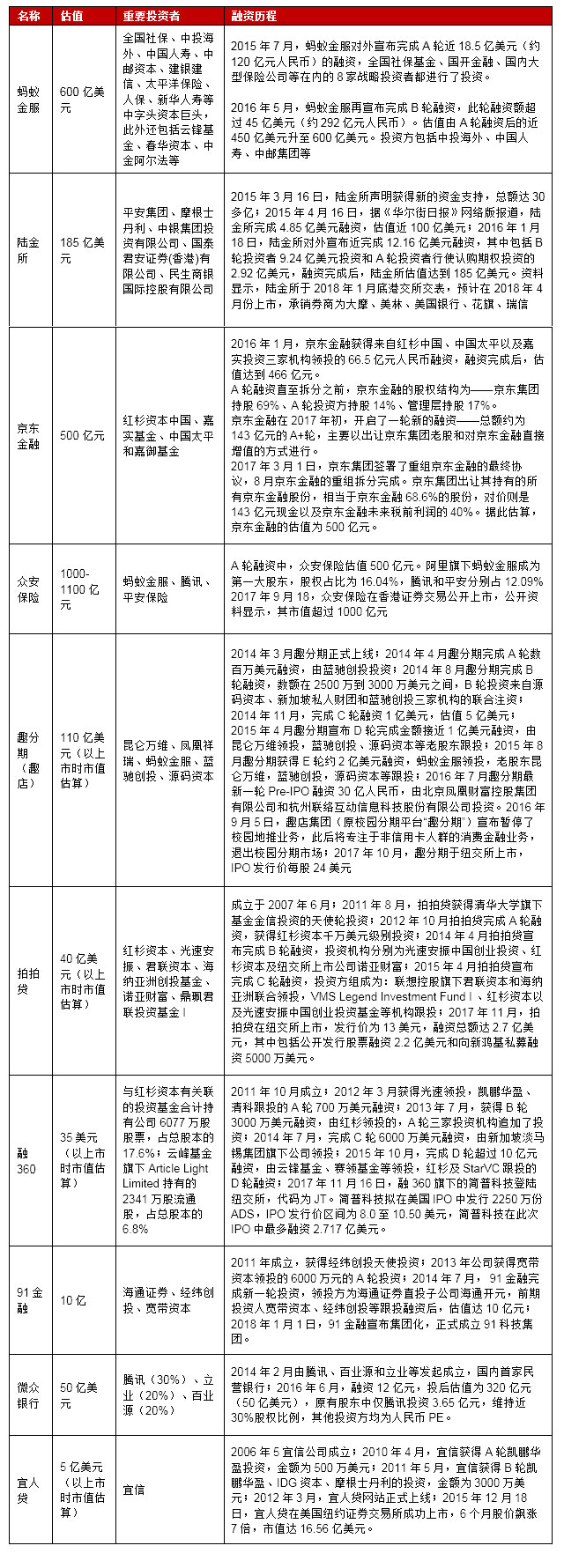 表3:主要互联网金融公司估值及投资人
