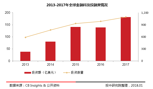 图15:2013-2017年全球金融科技投融资情况