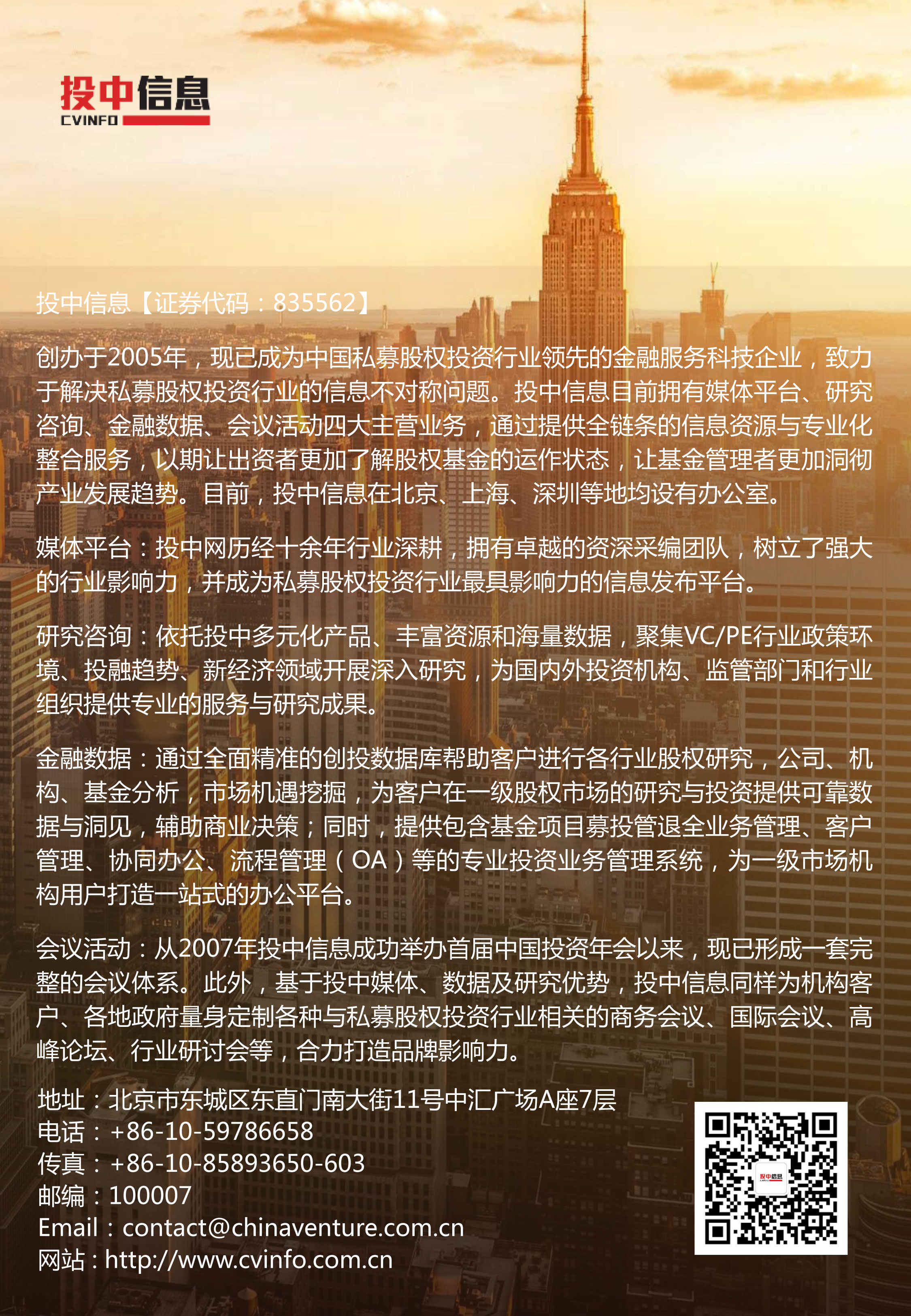 第一时间获取股权投资行业新鲜资讯和深度商业分析,请在微信公众账号中搜索投中网,或用手机扫描左侧二维码,即可获得投中网每日精华内容推送。