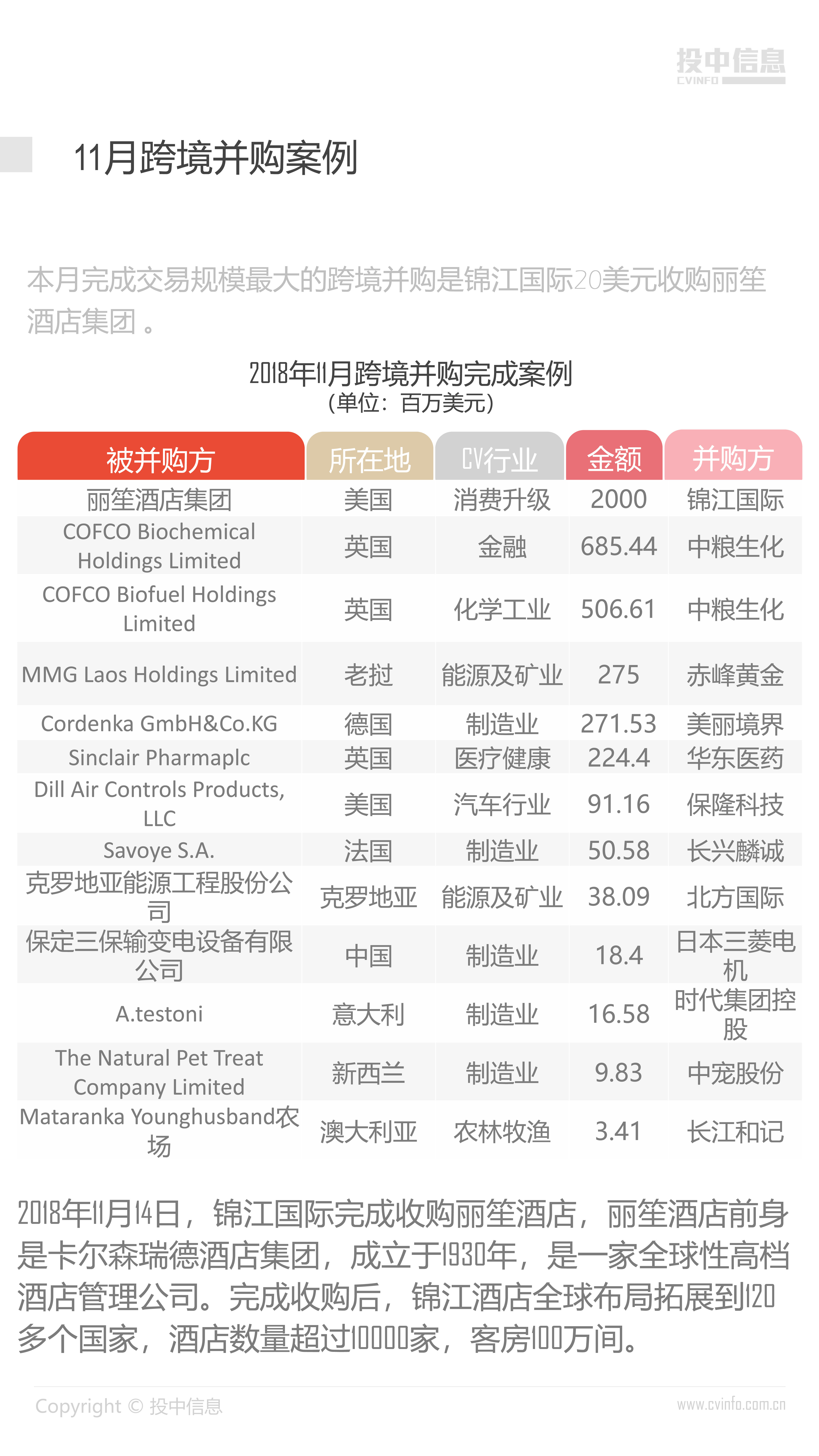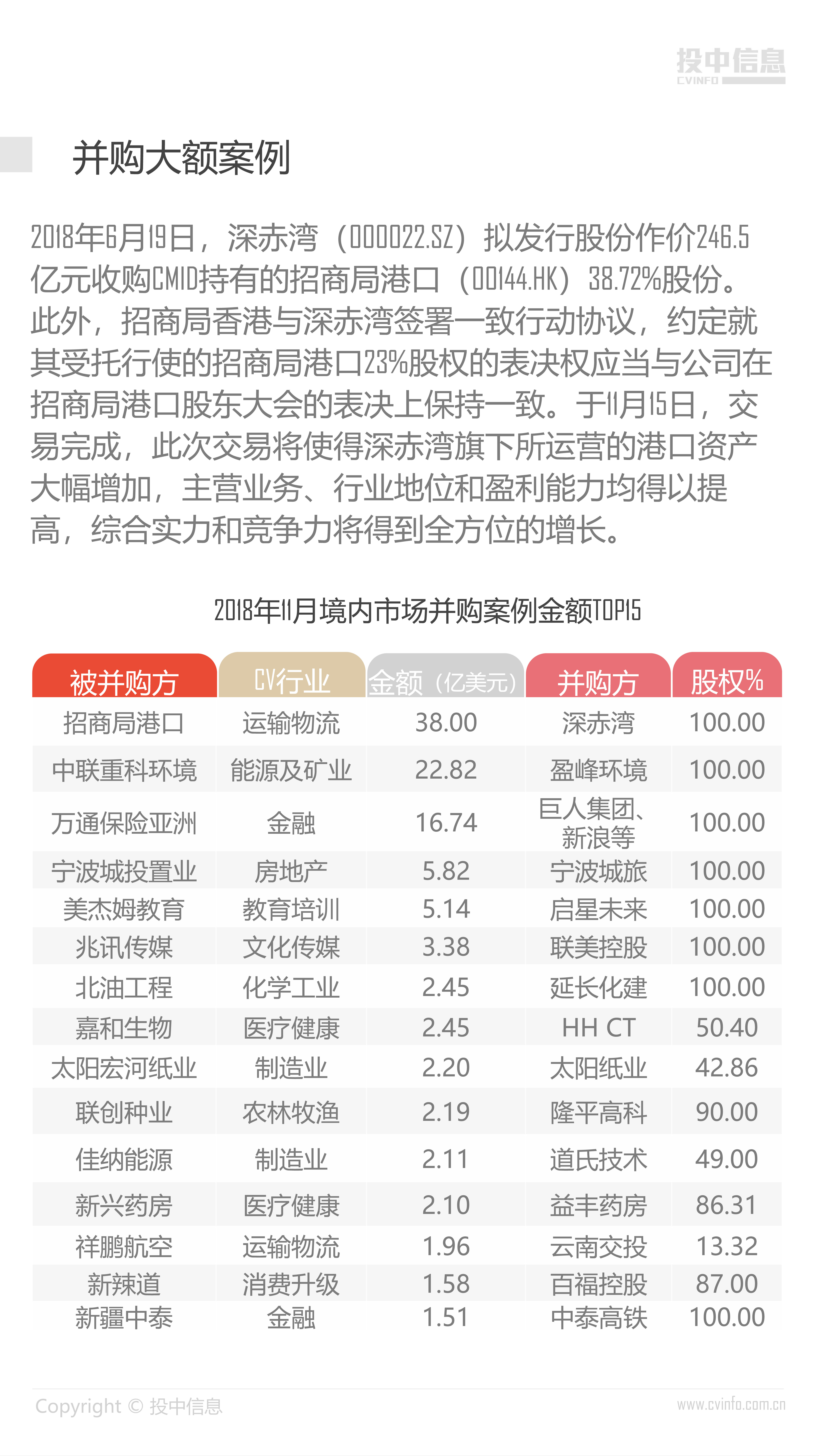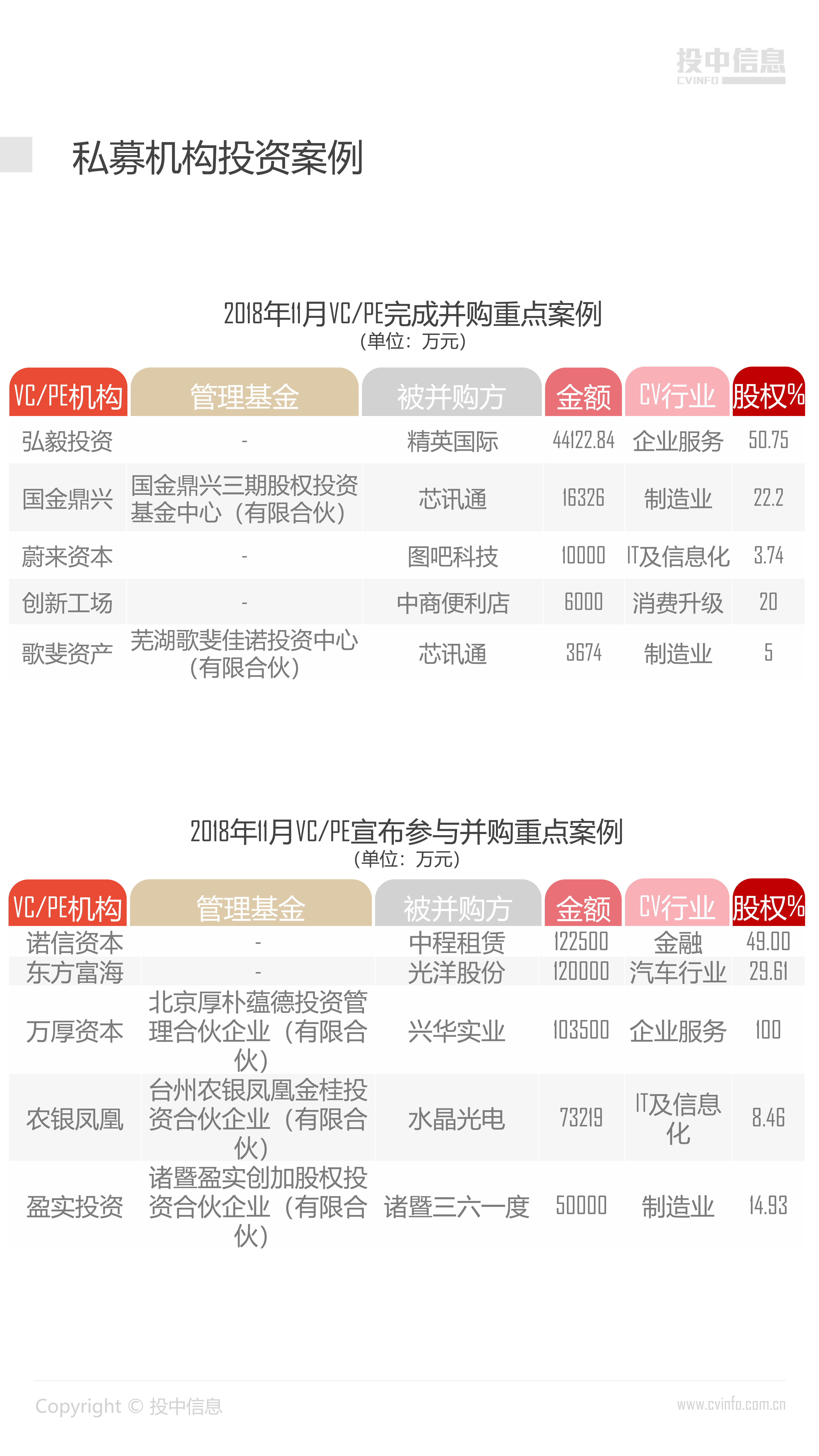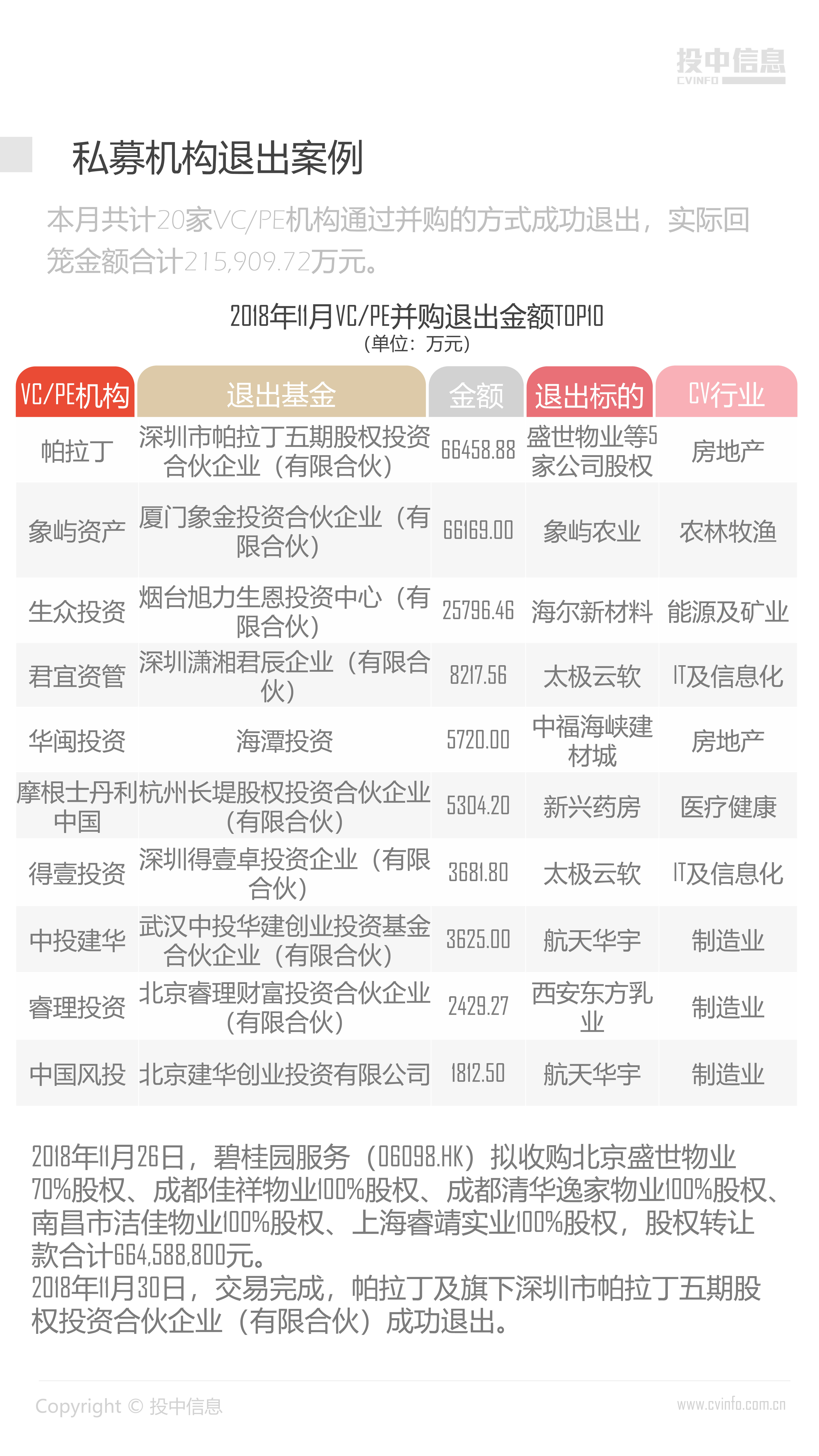 投中统计:2018年11月中国并购市场数据报告