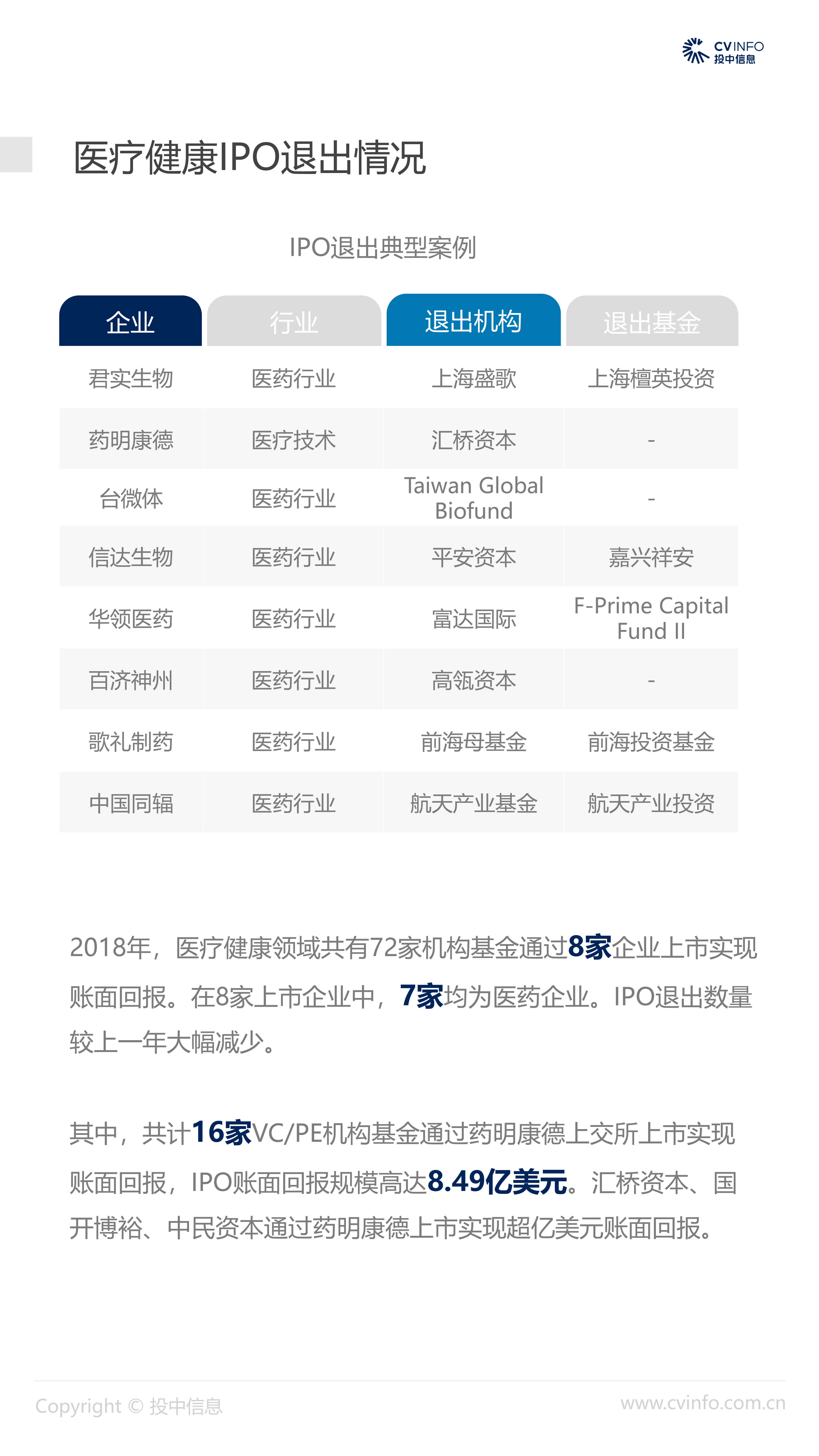 投中统计:2018中国医疗健康行业市场数据报告