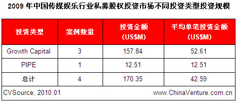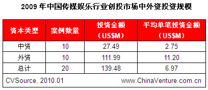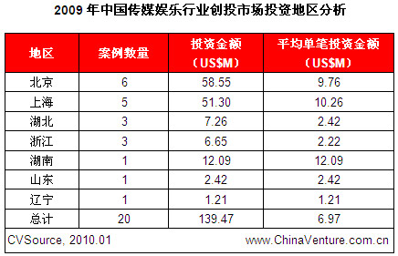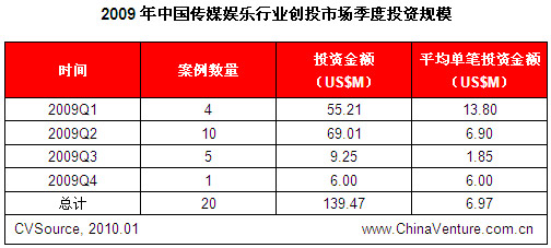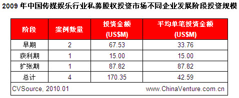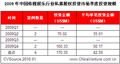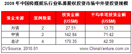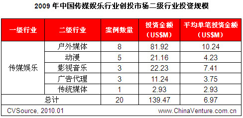 ChinaVenture 2009年中国传媒娱乐行业投资统计