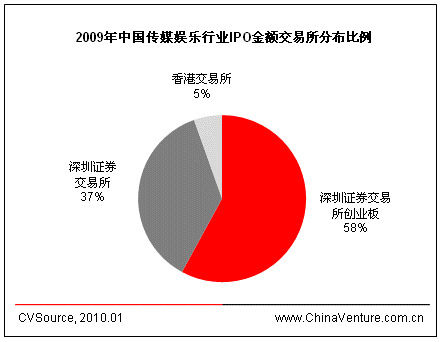 l 相比创投和私募股权投资市场的低迷景象,2009年中国传媒娱乐行业IPO和并购市场自第三季度起迅速发力,显示出比较强劲的复苏态势。年内出现多个经典案例:华谊兄弟登陆创业板,成为国内首个成功IPO的影视公司;奥飞动漫登陆深交所中小板,成为国内首家动漫类上市公司;华视传媒斥资1.60亿美元收购数码媒体集团(DMG),成为中国最大的户外数字电视移动广告运营商。这些成功案例或开行业先河,或对竞争格局产生重大影响,极有可能带动传媒娱乐行业在2010年掀起新一轮的IPO和并购热潮。