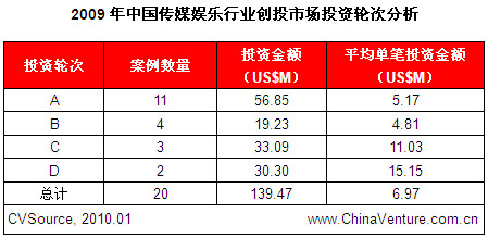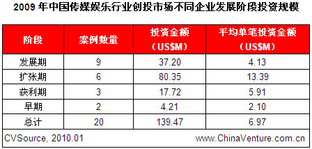 2. 2. 2009年中国传媒娱乐行业创业投资市场投资统计分析