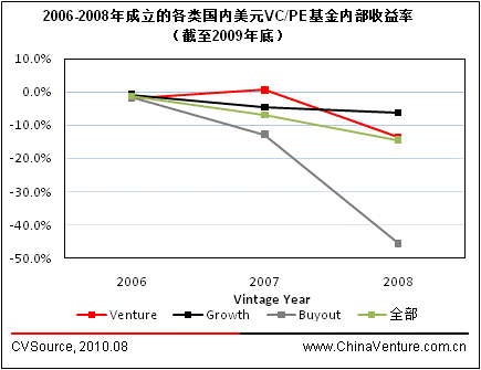 图3 2006-2008年成立的各类国内美元VC/PE基金内部收益率(截至2009年底)