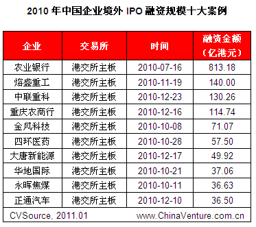 投中观点:490家中国企业实现IPO 2010年资本市场爆发