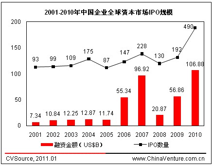 图1 2001-2010年中国企业全球资本市场IPO规模