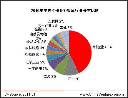 图2.3-1 2010年中国企业IPO数量行业分布比例