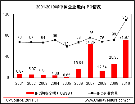 图2.2-3 2001-2010年中国企业境内IPO情况