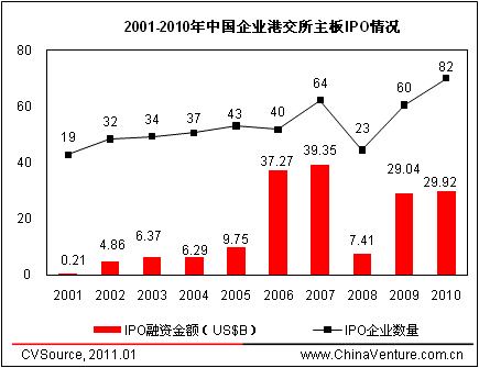 图2.2-4 2001-2010年中国企业港交所主板IPO情况