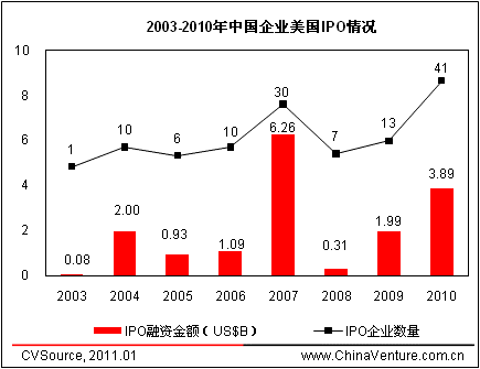 图2.2-5 2003-2010年中国企业美国IPO情况