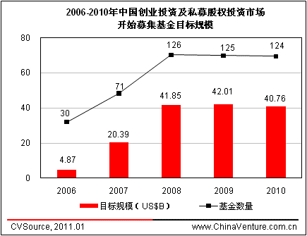 图4.1-1 2006-2010年中国创业投资及私募股权投资市场开始募资基金目标规模