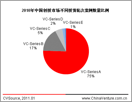 图8-1 2010年中国创投市场不同投资轮次案例数量比例