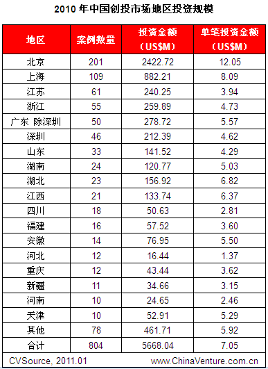 2010年披露VC投资案例804起,投资总额56.68亿美元,均超过2007年721起案例、投资总额53.33亿美元的历史高位。