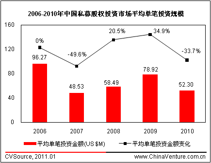 图11-2 2006-2010年中国私募股权投资市场平均单笔投资规模0F0F