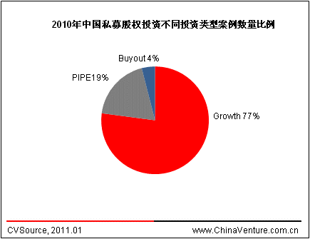 图13-1 2010年中国私募股权投资不同投资类型案例数量比例