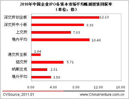 图17.3-2 2010年各交易所IPO平均账面投资回报率
