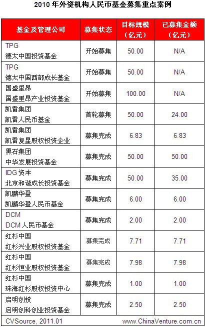 表2.2-1 2010年外资机构人民币基金募集重点案例