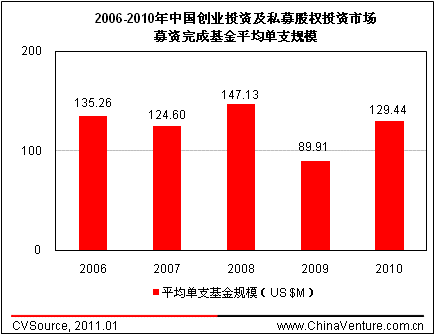 图3.1-2 2006-2010年中国创业投资及私募股权投资市场募资完成基金平均单支规模