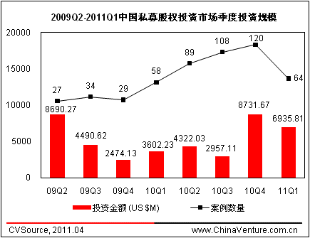 图1 2009Q2-2011Q1中国私募股权投资市场季度投资规模
