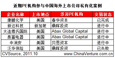 全球金融危机爆发以来境外资本市场的估值调整,使部分上市中国公司得以推进以股权结构优化为目的的资本运作,而具备丰富并购交易经验的境外PE机构也将其作为成长型投资和Pre-IPO投资以外的阶段性机会,寄望于由此带来的公司价值提升,并在与国内本土PE机构的激烈竞争中重夺优势。