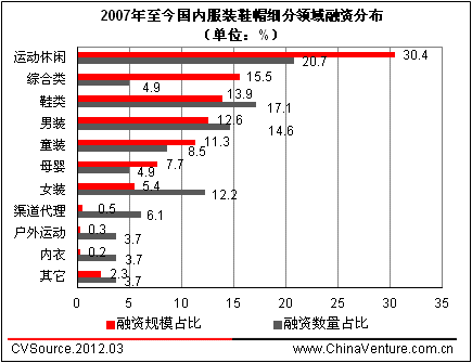 图4 2007年至今国内服装鞋帽细分领域融资分布