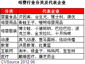 表1 母婴行业分类及代表企业
