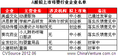 截至6月7日证监会披露的A股拟上市企业名单中,分别有洪恩教育、金发拉比、小猪班纳等6家母婴行业相关企业排队上市,英特尔投资有望实现退出(见表5)。